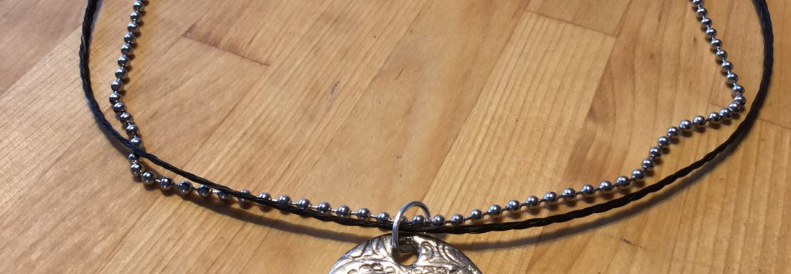 • Une croix et un coeur, argent fin .950 sur crin de cheval