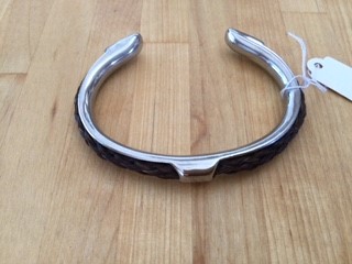 • Bracelet manchette en acier inoxydable avec insertion d’une tresse