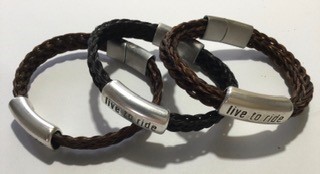 • bracelet “Live to Ride” en zamak, attache aimantée en acier inox